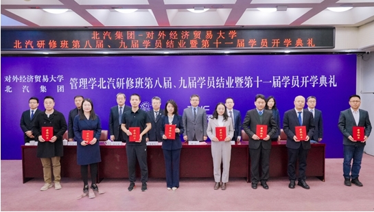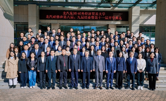 2025年10月26日上午,北汽集团-对外经济贸易大学管理学北汽研修班第八届、九届学员结业暨第十一届学员开学典礼在我校诚信楼国际会议厅举行。对外经济贸易大学党委副书记、纪委书记马贵生,国际商学院院长邢小强,副院长杨震宁,EE中心主任陶哲雄,以及北汽集团党委常委、副总经理谢伟,人力资源管理部部长张然,人力资源管理部部长助理宋婷婷,人力资源管理部副部长(挂职)、北汽鹏龙人力资源管理部部长朱仁宇等校企双方领导出席了典礼。第八届、九届结业和第十一届新入学的百余名学员及相关教师代表参加了活动。典礼由国际商学院副院长杨震宁主持。 对外经济贸易大学党委副书记、纪委书记马贵生首先致辞。他代表学校向圆满完成学业的第八届、九届学员表示热烈祝贺,对即将开启学习旅程的第十一届学员表示诚挚欢迎,并对北汽集团长期以来的信任与支持表示衷心感谢。 马书记回顾了双方自2013年合作以来的丰硕成果。北汽研修班已连续举办十一期,累计培养学员逾700名,其中近百名学员进一步深造并获得硕士学位,充分体现了校企合作在人才培养方面的扎实成效与持久影响力。他指出,作为教育部直属的“双一流”建设高校,对外经济贸易大学始终坚持以服务国家战略和经济发展为导向,不断深化产学研融合,推进高端智库建设,打造“数字+”学科生态,致力于培养兼具全球视野、创新思维和实践能力的国际化复合型人才。展望未来,学校将进一步聚焦北汽集团在国际化布局、数字化转型与可持续发展等方面的战略需求,持续深化合作内容,共同打造新时代产教融合的示范标杆。 北汽集团党委常委、副总经理谢伟在致辞中,对校企双方十二年的合作成果予以高度评价。他指出,研修班项目已累计培养并输送700余名管理人才,广泛分布于北汽集团研发、生产、金融、物流、管理等领域,为集团发展注入了持续动能。 谢伟在致辞中以汽车产业面临的“百年未有之大变局”为背景,深入剖析了智能化、低碳化转型带来的机遇与挑战。他指出,在复杂多变的产业环境中,企业必须坚定走高质量发展之路,避免陷入“恶性竞争”和“内卷外溢”的困境,关键在于持续优化人才培养与管理机制。他强调要贯彻落实北汽集团三季度工作会精神,践行“快、准、实”作风,以“决战决胜”姿态全力冲刺年度目标。他勉励学员保持对政策和市场的敏锐度,精准把握岗位职责与战略方向,严格掌控目标推进的节奏与效率。谢伟鼓励全体学员将学习作为持续创新的源泉,做到知行合一,在不确定的环境中稳步前行,为集团应对行业竞争与转型挑战提供智力支撑和行动保障。最后,谢伟对未来合作提出殷切期望,表示双方将继续深化在国际化人才培养、科研创新、新媒体营销等领域全方位的战略合作,共同探索校企合作新模式和新路径。 随后,在结业学员表彰环节,国际商学院院长邢小强充分肯定了北汽研修班第八届、九届学员克服困难,认真投入学习的优异表现,鼓励大家在今后的工作中继续锐意进取、追求卓越,取得更大成绩。他特别感谢在学习期间为班级工作付出大量时间和精力的班干部,并向获得表彰的优秀学员代表表示祝贺。随后,邢院长宣读了优秀班干部与优秀学员名单,校企双方领导共同为获奖学员颁发荣誉证书,以表彰他们在学习中的勤勉态度与卓越表现。 优秀班干部及学员代表甄雪在发言中回顾了两年学习生活的收获和感悟。她表示,研修班课程体系完善、教学内容贴近实战,帮助学员在思想碰撞中实现认知升级,在知行合一中完成能力突破。未来,她将把所学知识转化为工作动力,助力北汽在电动化、智能化、网联化的转型中抢占先机。新学员代表见海霞在发言中表达了对北汽集团及贸大的感激之情,认为重返校园不仅是“充电”,更是一次思想的再出发。她表示,第十一届全体学员将以空杯心态投入学习,以实干精神践行理念,努力将学术成果转化为创新动力,为集团高质量发展贡献力量。 典礼最后,全体嘉宾与学员在诚信楼前合影留念。 十二载携手共进,硕果累累,新征程再启航,前景可期。未来,双方将继续深化战略合作,共同探索校企协同育人的新模式,为汽车产业的创新发展与国家经济建设贡献更多智慧与力量。